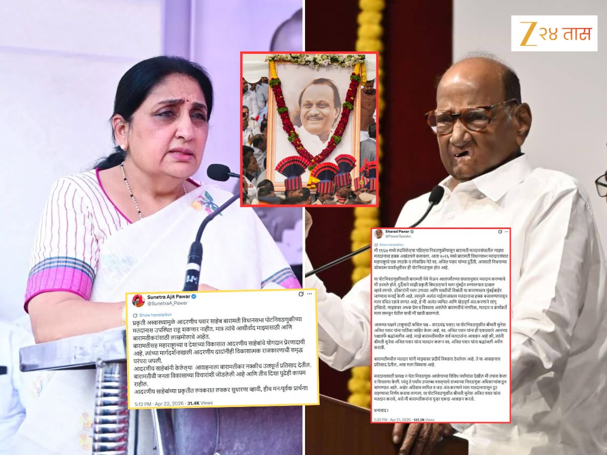 Sunetra Pawar Post for Sharad Pawar: अजित पवारांच्या अकाली निधनामुळे रिक्त झालेल्या बारामती मतदारसंघासाठी आज पोटनिवडणूक होत आहे. सुनेत्रा पवार ही निवडणूक लढत असल्याने संपूर्ण राज्याचं लक्ष बारामतीकडे आहे. सर्व मोठ्या पक्षांनी सुनेत्रा पवारांना पाठिंबा दिला असल्याने त्या निवडून येणार हे निश्चित आहे. मात्र काही अपक्ष उमेदवार निवडणुकीच्या रिंगणात असल्याने निवडणूक बिनविरोध होऊ शकलेली नाही. शरद पवारांच्या राष्ट्रवादी काँग्रेसनेही सुनेत्रा पवारांना पाठिंबा दिला असून, सुप्रिया सुळेंनी सांगता सभेला हजेरी लावली होती. दरम्यान शरद पवारांनी प्रकृतीच्या कारणास्तव आपण मतदान करु शकत नसल्याचं सांगितलं आहे. त्या पार्श्वभूमीवर सुनेत्रा पवार आणि पार्थ पवार यांनी बुधवारी रात्री पोस्ट केली आहे.