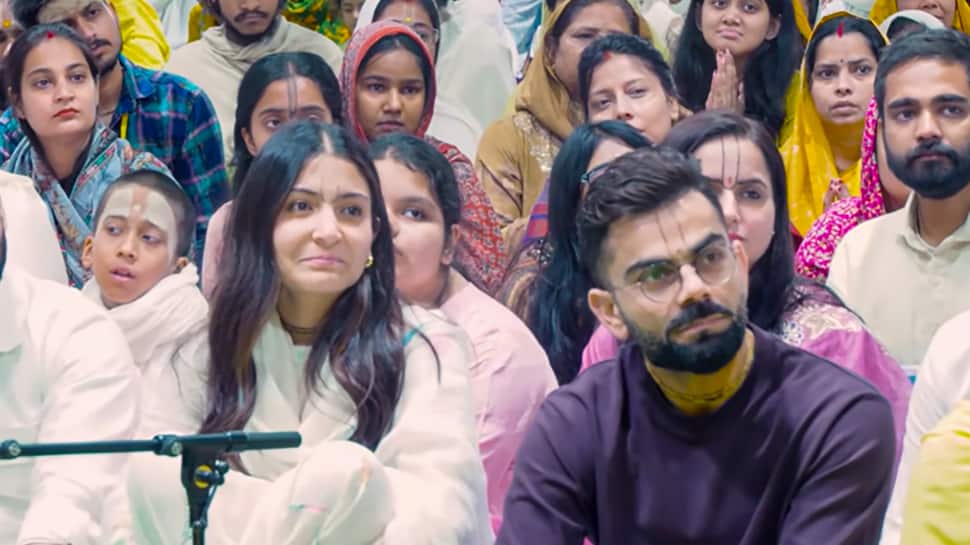 In a video released by the Ashram on their YouTube channel, Bhajan Marg, Kohli and Anushka were sitting silently with the large crowd in the ashram hall, listening to the preaching of Premanand Maharaj
